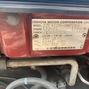 Looking for a part off this 2002 Toyota Corolla? Our team handles enquiries for everything from sensors, switches, and interior components to full body panels, engines, and drivetrains. Tell us what you need, fill in the form below, and we’ll come back to you with availability and a straight price.