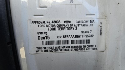 2015 Ford Territory SZ SUV 2.7 V6 TDCi RWD Diesel 2.7L 6cyl 140kW 276DT 2720cc 140kW (Diesel)