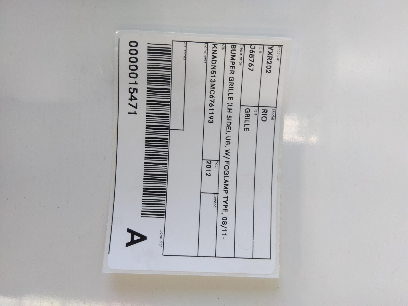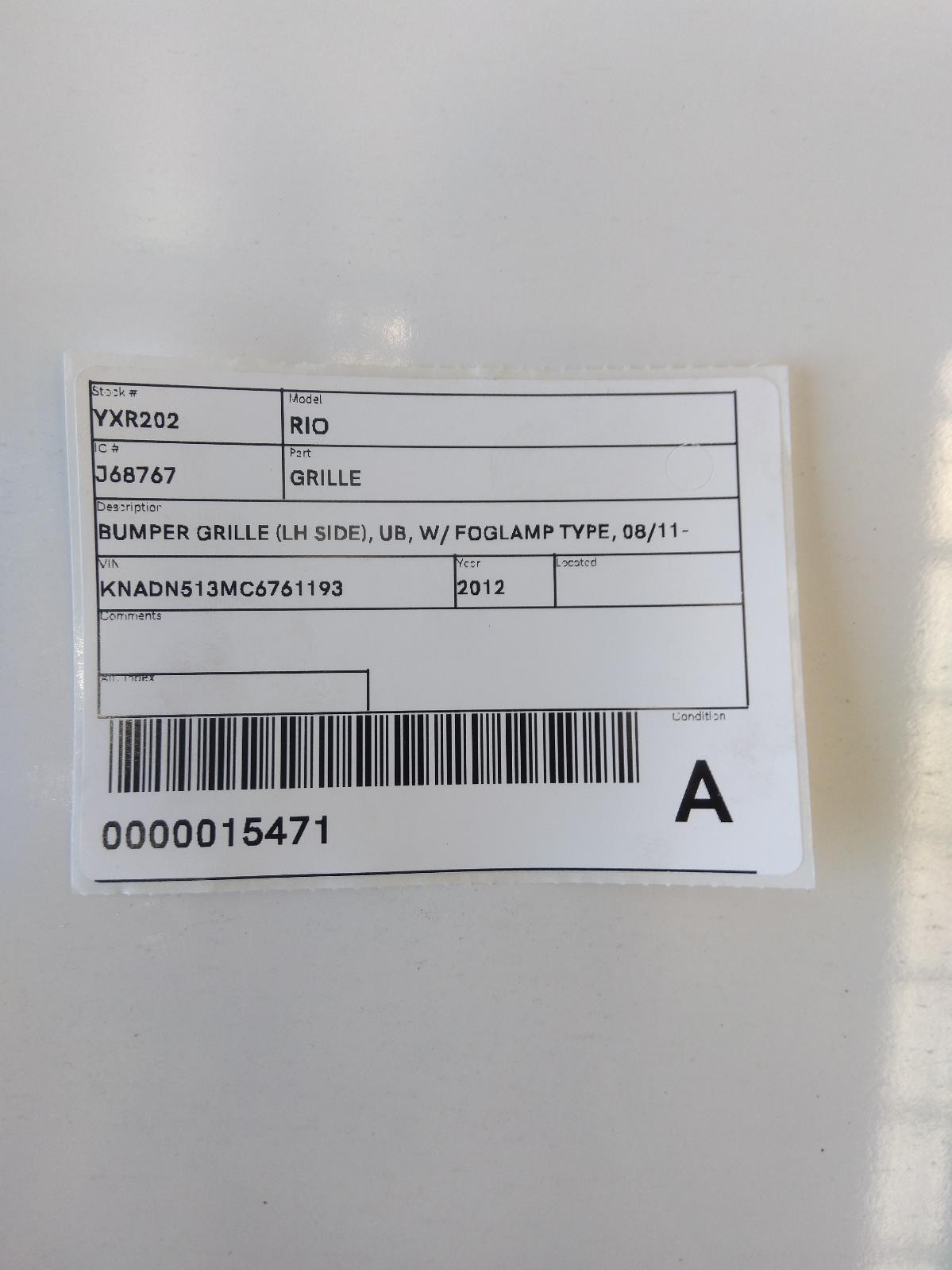 KIA RIO UB 08/2011-11/2014 LEFT SIDE BUMPER GRILLE WITH FOGLAMP TYPE