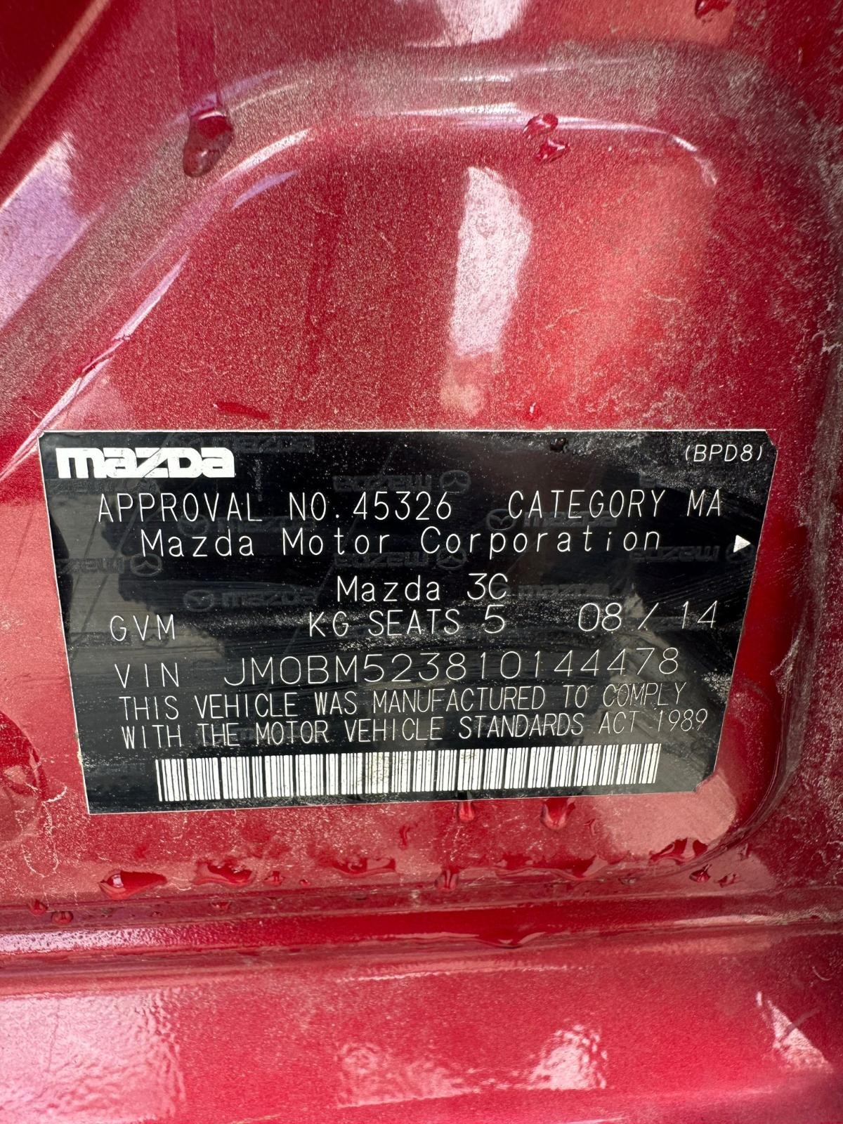 MAZDA 3 BM 11/2013-05/2016 LEFT DOOR MIRROR WITH BLIND SPOT TYPE P/N BHV669181A