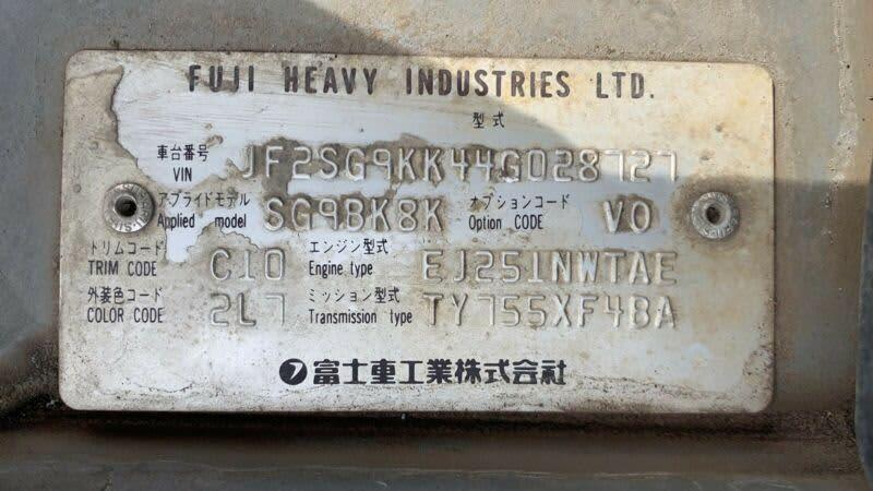 | Vehicle Identification Number (VIN) | |