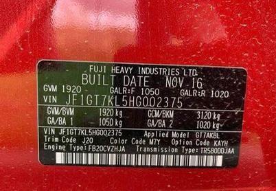 | Vehicle Identification Number (VIN) | |
