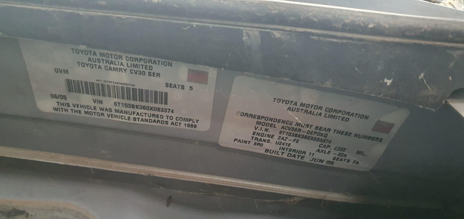 TOYOTA CAMRY SK36 08/02-05/06 RIGHT FRONT DOOR