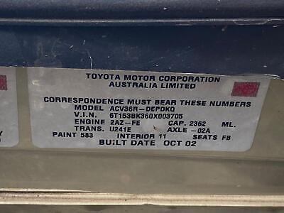 Model: CAMRY 2002