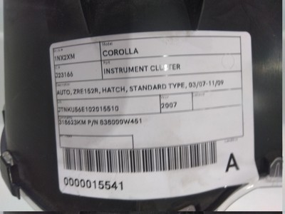 TOYOTA COROLLA ZRE152R 03/2007-11/2009 INSTRUMENT CLUSTER 318623KM 838000W451true Description Shipping Payment Warranty Feedback About us Contact us Model: TOYOTA