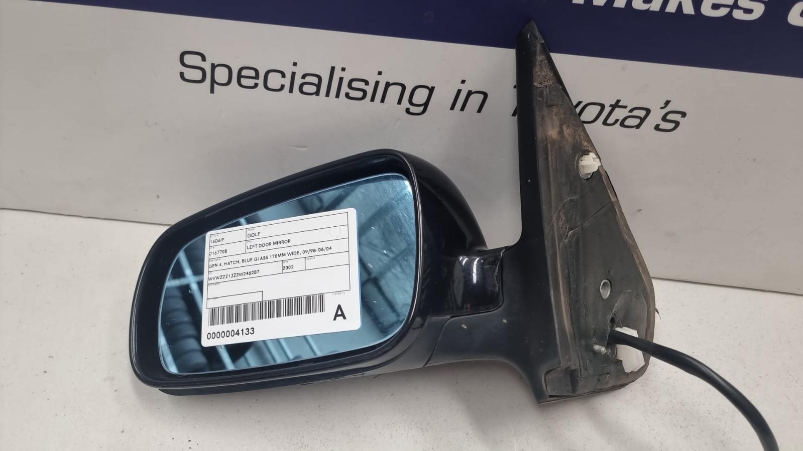 VOLKSWAGEN GOLF LEFT DOOR MIRROR GEN 4, HATCH, BLUE GLASS 170MM WIDE, 09/98-06/0